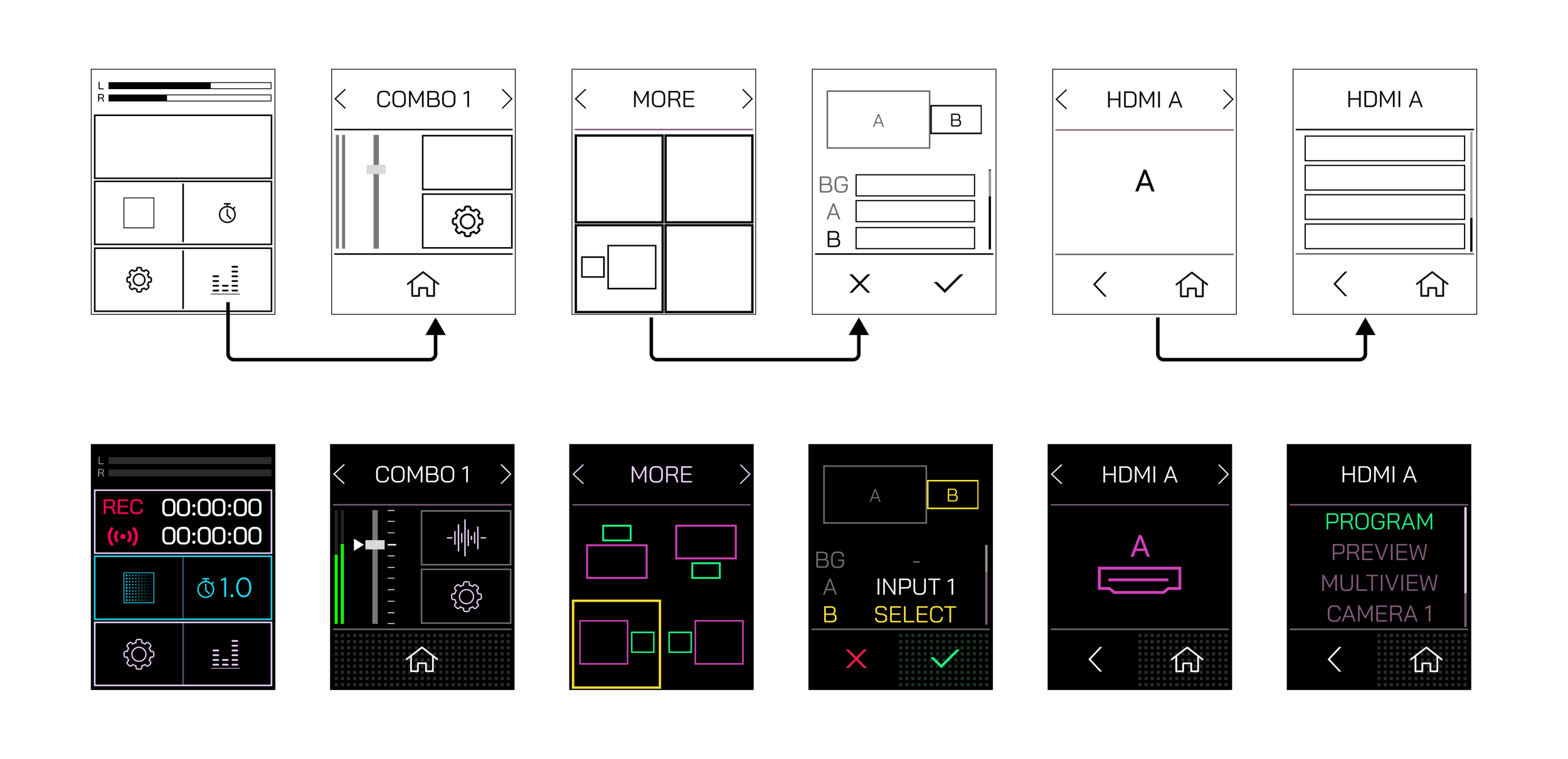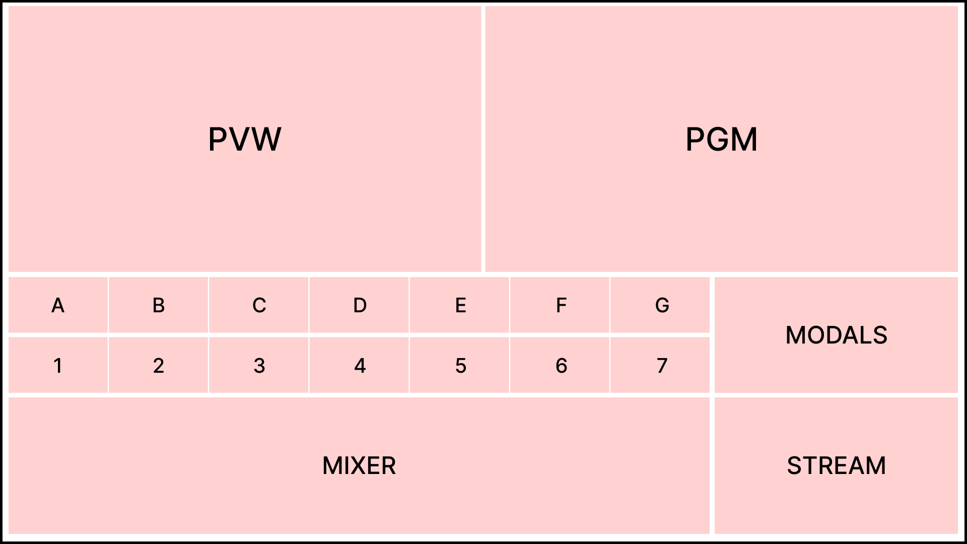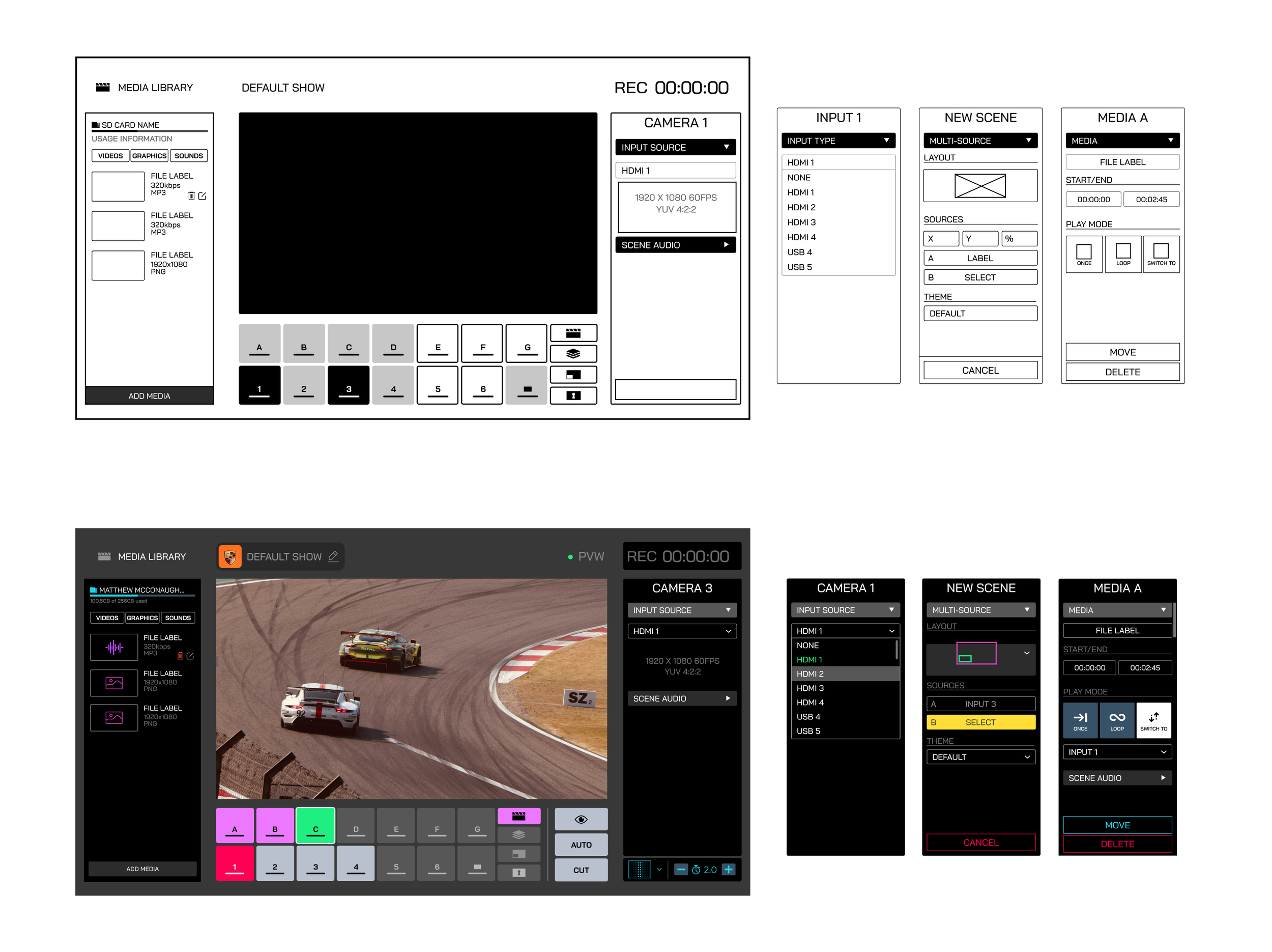 Our design system organises scenes, media, and overlays into intuitive banks, allowing users to access each category with a single press. By reducing the number of physical buttons, we minimised visual clutter and enhanced usability.